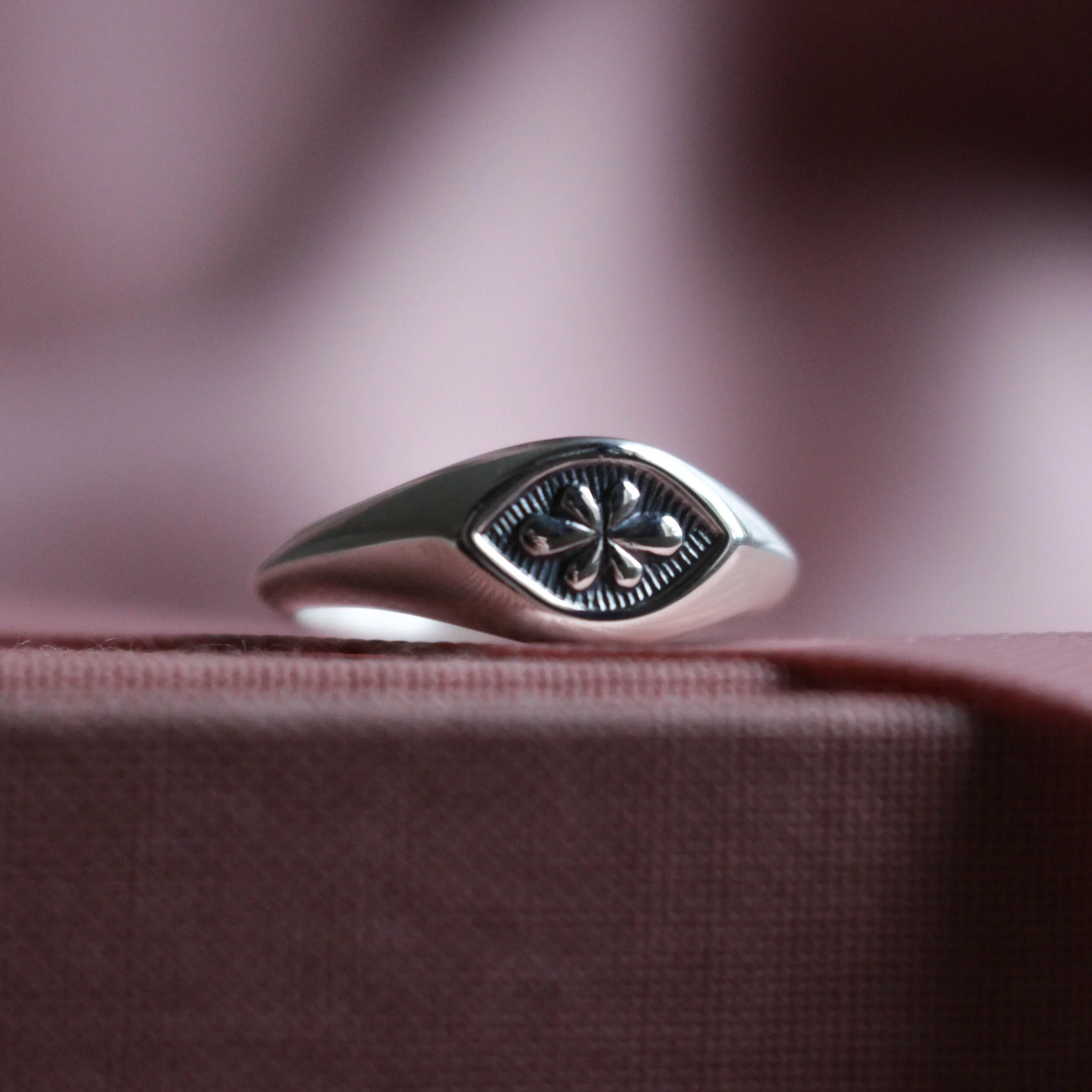 A pretty and dainty sterling silver signet, originally hand carved in wax and cast into sterling silver.